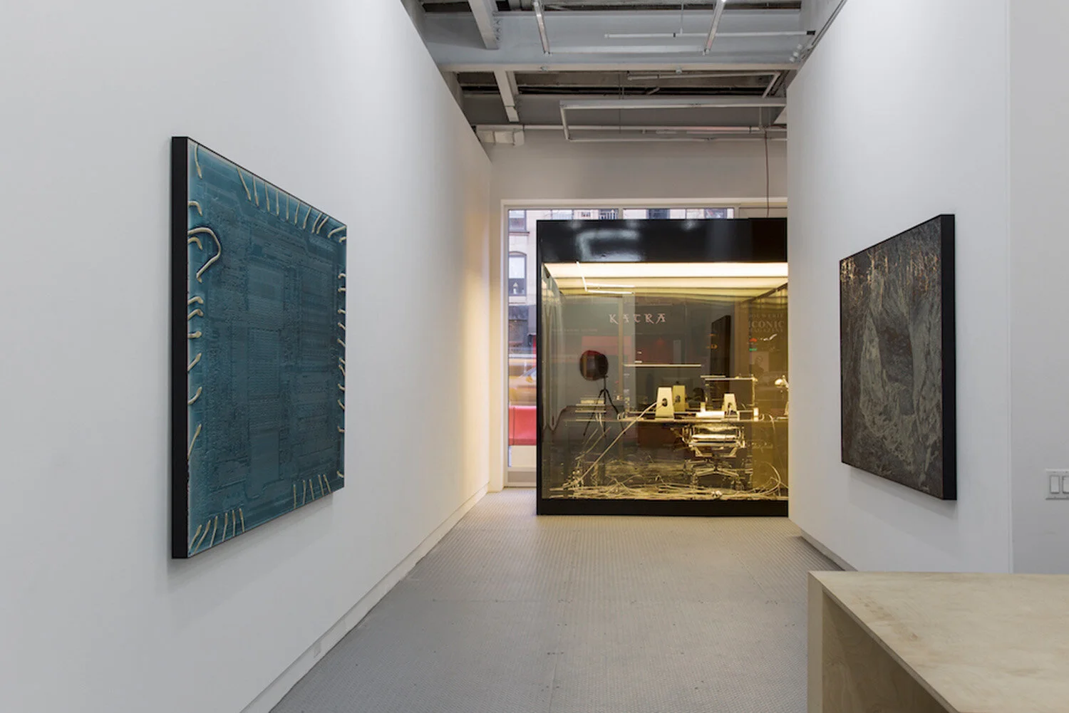 When mathematician and engineer Claude Shannon showed how to quantify and encode any type of data, he established the decisive unity of all information media; where language and culture were once the repository of human knowledge, digitization allowed for all knowledge to be stored and operated on (increasingly powerful) computers. In Baier’s bas-reliefs of servers ranged in endless grids, the artist presents metaphorical illustrations of the post-Shannon universe reminiscent of Jorge Luis Borges’s Library of Babel. Acknowledging that the composition of such devices remains impenetrably arcane to most users, Baier challenges our uninformed dependency in a sculpture titled Black Box (2019). The work consists of the replicated internal hardware of a PC, its matrix of circuitry concealed entirely within a container, but documented in an accompanying video.