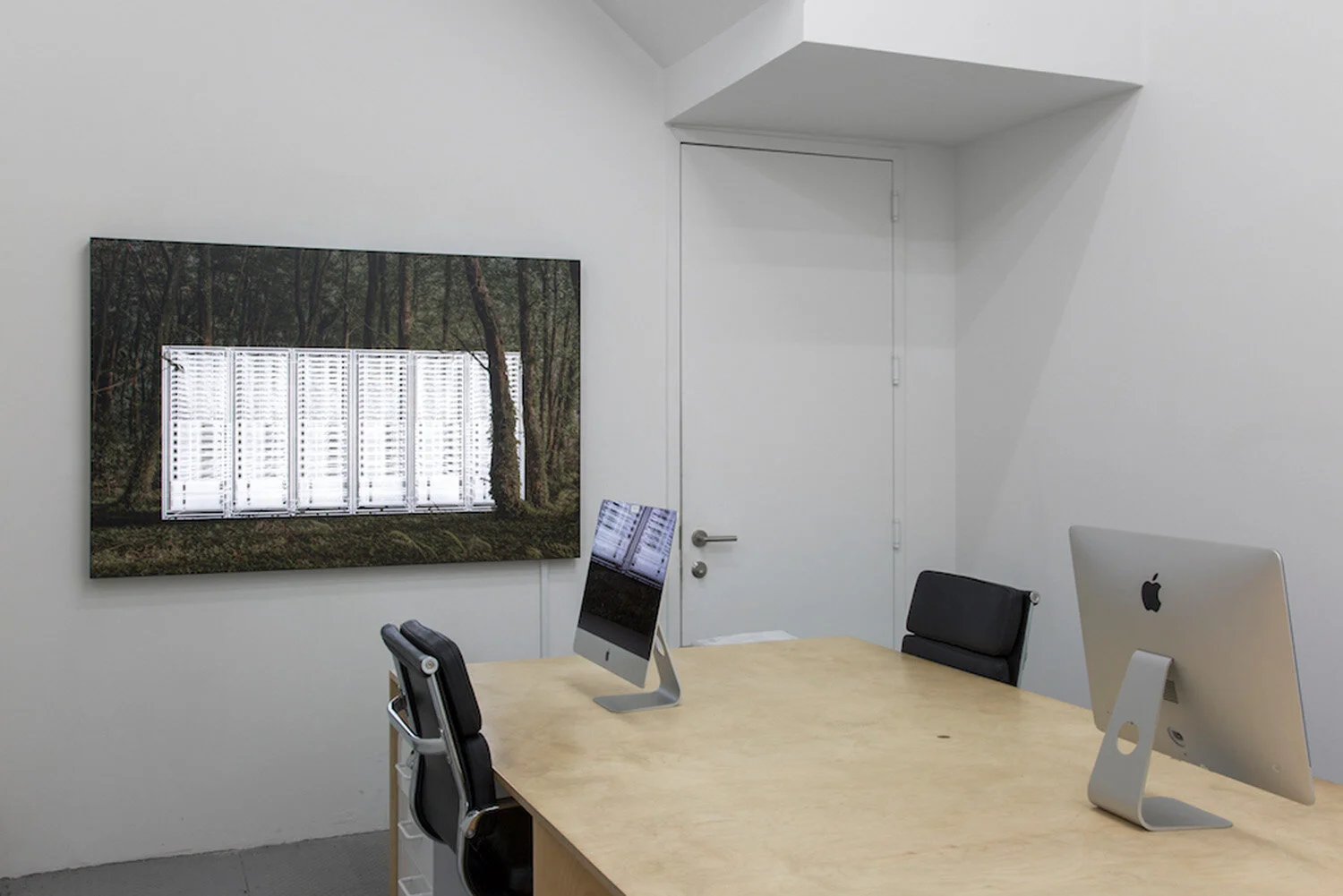 Finally, futurist thinker Raymond Kurzweil has suggested that exponentially advancing technologies will soon become inextricably and unpredictably entangled with human life. In his video projection Procession (2019), Baier invites us to embark on a meditative journey through unvarying data centers and a luxuriant forest, in which it becomes impossible to determine which sights and sounds are natural and which artificial.