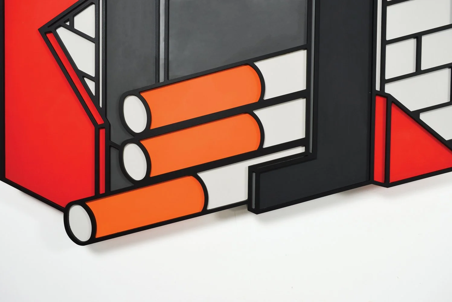 Liam Fallon’s sculptural works challenge the deceptive façades of everyday spaces, revealing unexpected movements and transformations. He offers commentary on queer culture, challenging boundaries and presenting a theatrical perspective on love, desire and loss. Momentary pleasures of cigarettes blend into a walled tunnel. A passage. Rafa Silvares’s vibrant industrial landscapes create playful worlds within the starkness of urban life, inviting views to explore spatial qualities. Rosie McGinn’s inflatable installation mirrors her fixation on our collective pursuit of heightened moments, adrenaline and discovery, this time in space and sponsored by ‘Rod Bell’.