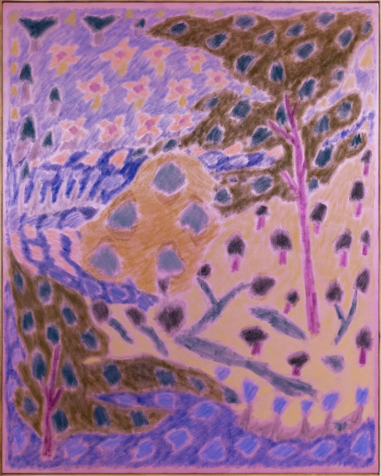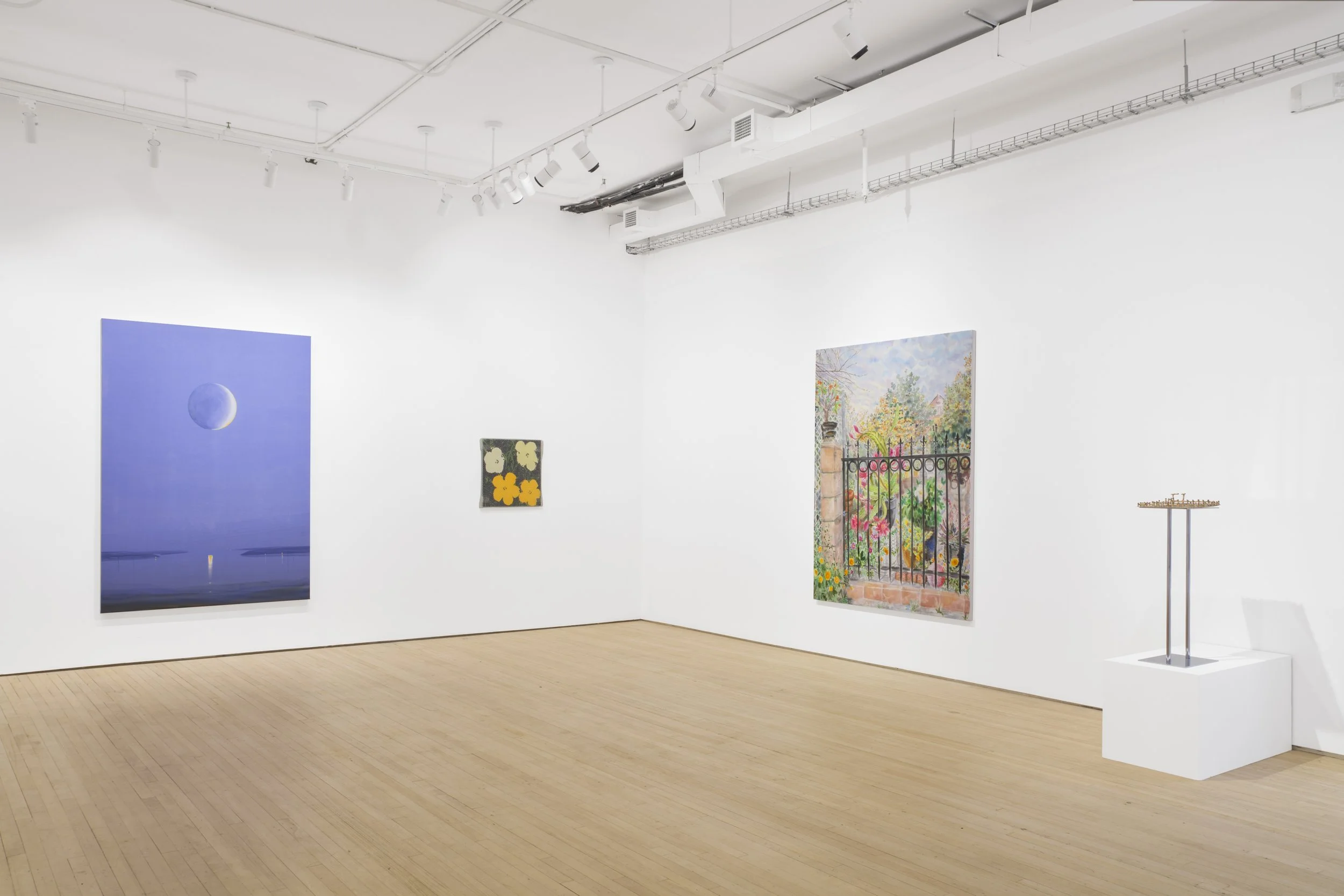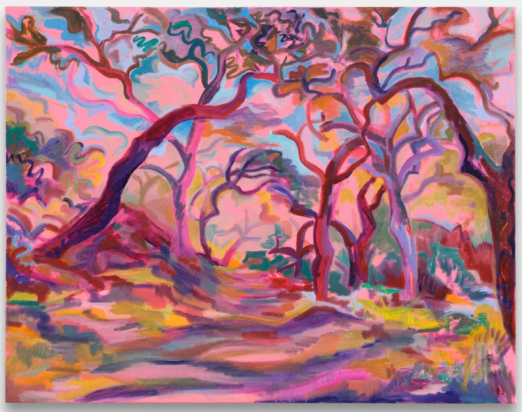 To know one’s position within a cycle is to understand that you are in motion. When lingering in admiration of a full moon we are reminded of our own internal phases. In Blue Moon, Wanda Koop invites us to linger in lunar awe, echoing the phases of our own becoming. Clare Woods’ Vagus Nerve depicts a smoldering skyscape with clouds suspended in time. From the foothills of Altadena, Mira Dancy’s Gabrielino Canopy responds to the scorched terrain left by the Eaton Fire. In her signature electric palette, she conjures a forest scene that insists on renewal.